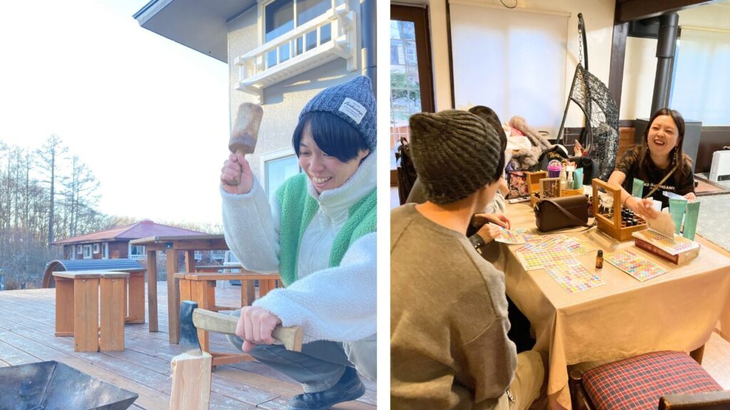 火付け体験・薪割り体験もできて、親子で大盛り上がり!
