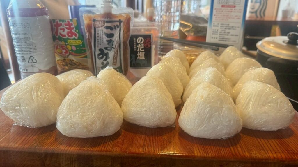 大量のおにぎりは、朝食で残ったお米をおにぎりにして、みんなでお持ち帰り❤️